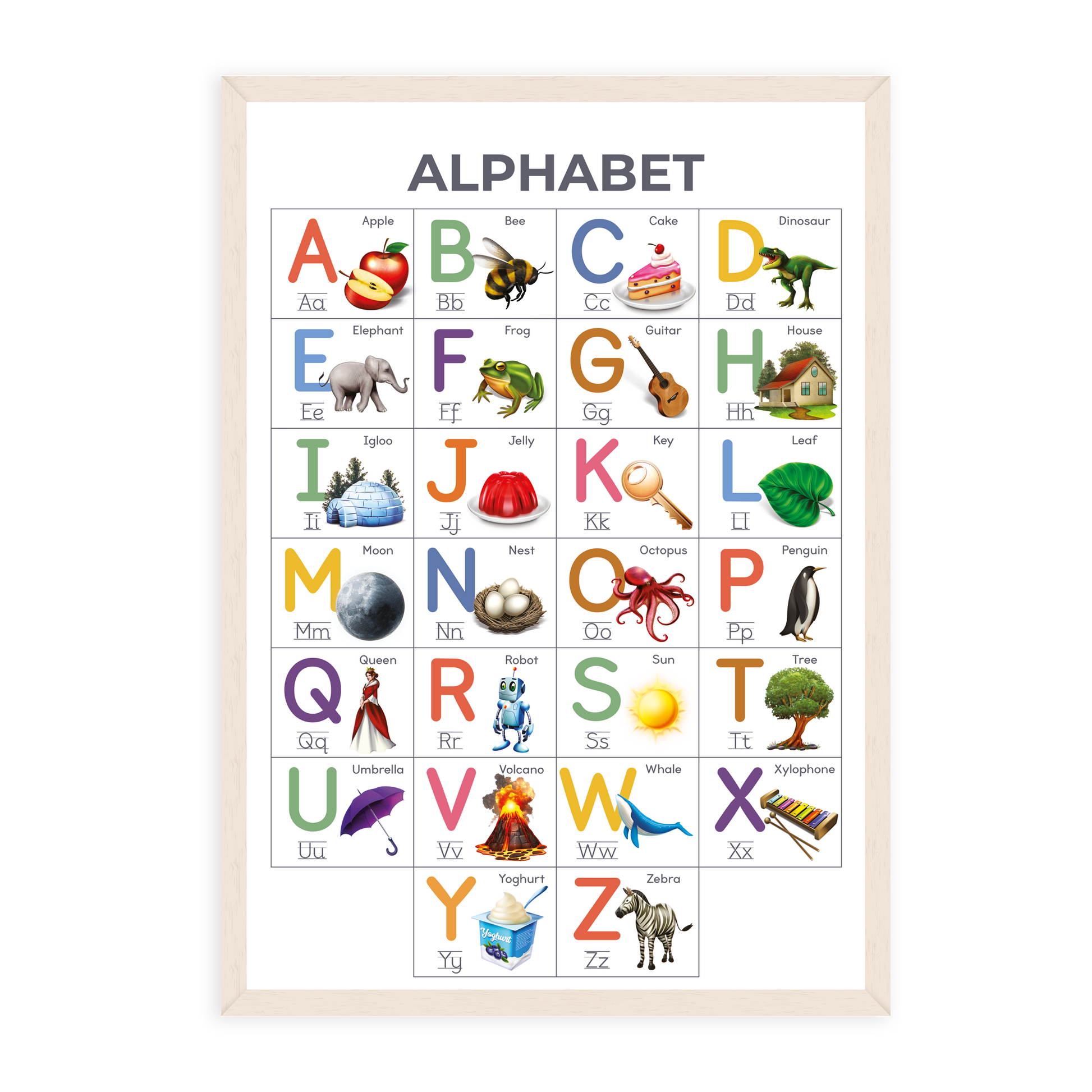 Teach your toddler the Alphabet with this beautifully designed poster. Printed on durable 350gsm silk A3 card with double-sided gloss lamination for added protection against tears and water.