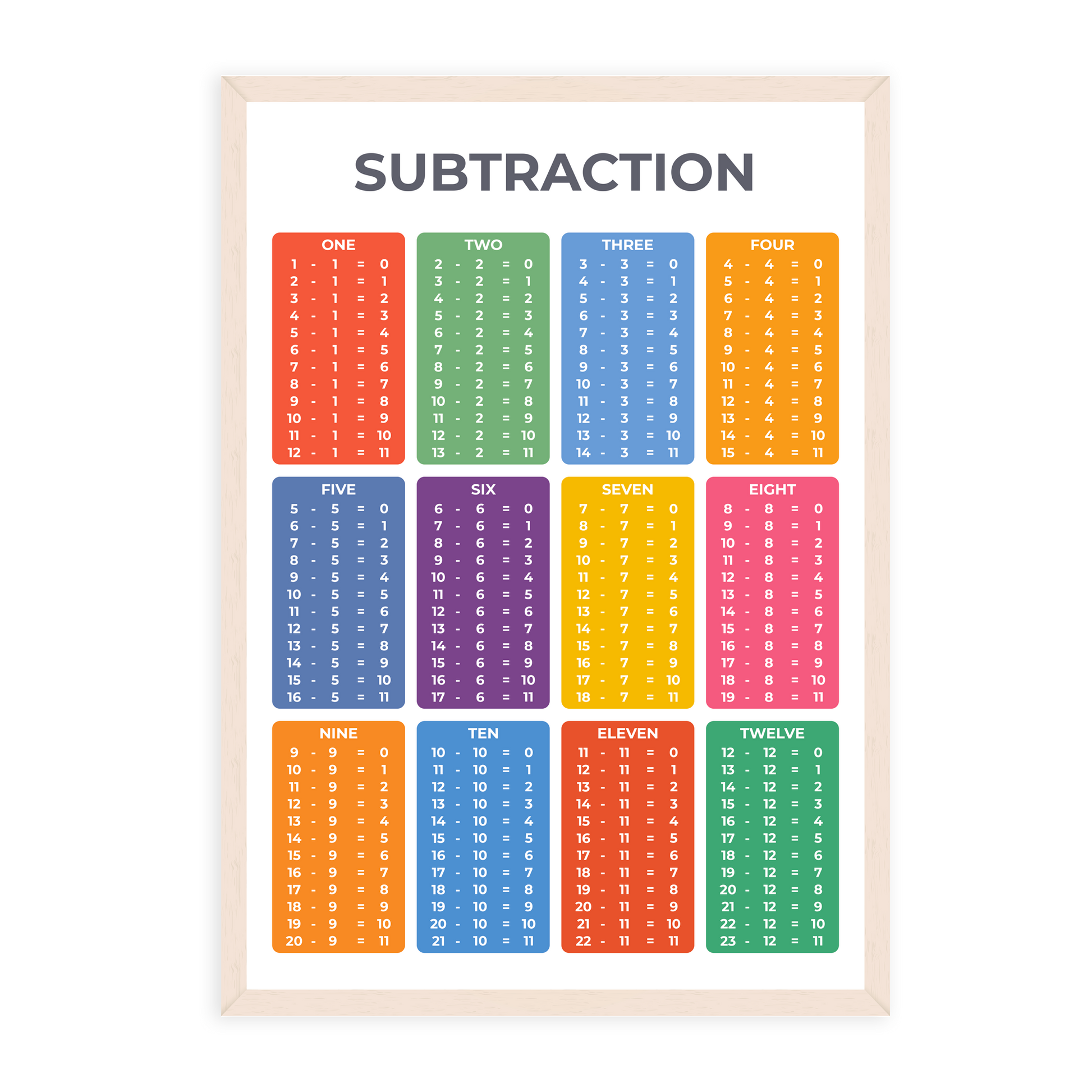 Introduce your child to Subtraction using our beautifully crafted poster. Printed on durable 350gsm silk A3 card with double-sided gloss lamination for added protection against tears and water.