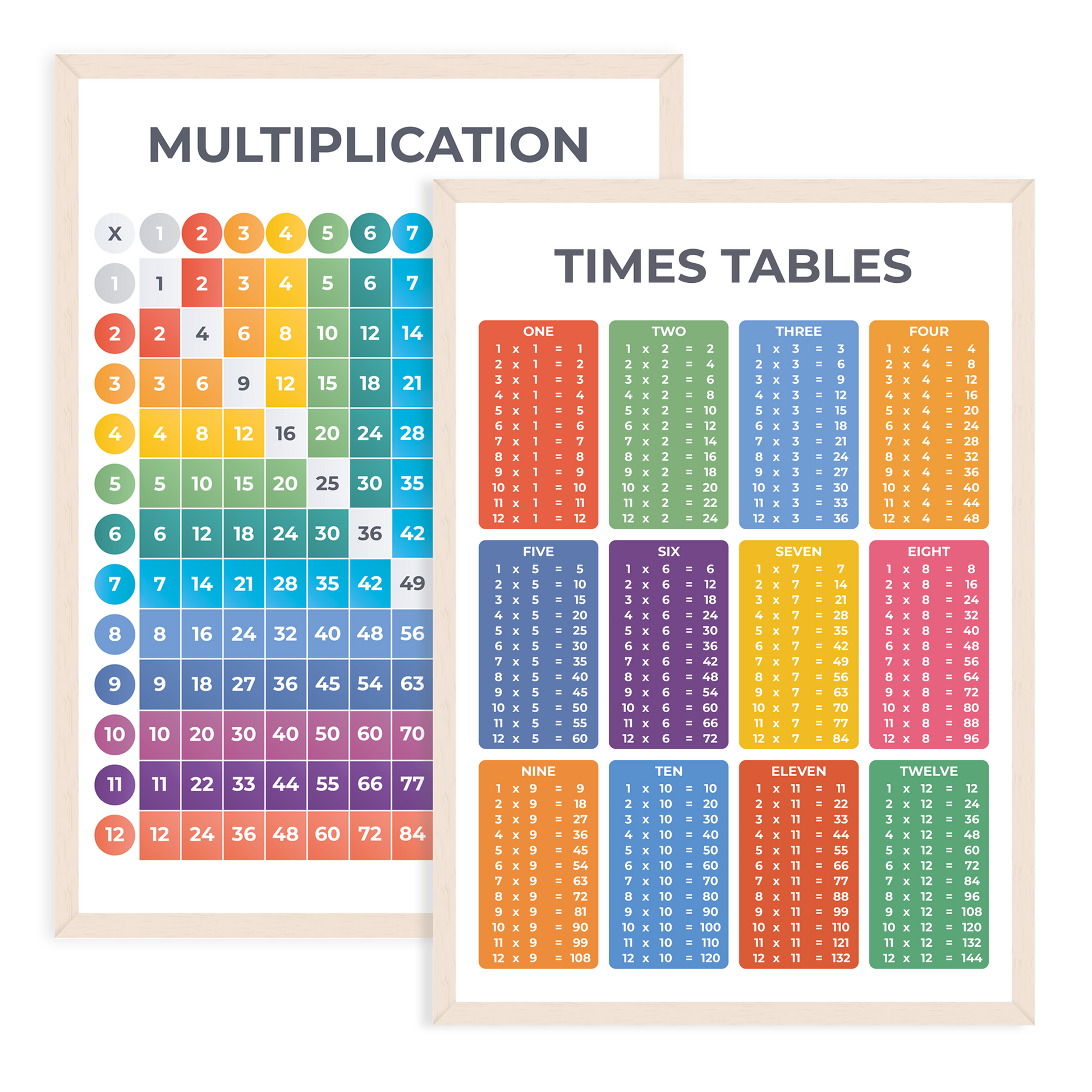 Times Tables & Multiplication Square Poster (A3, 2 Pack)