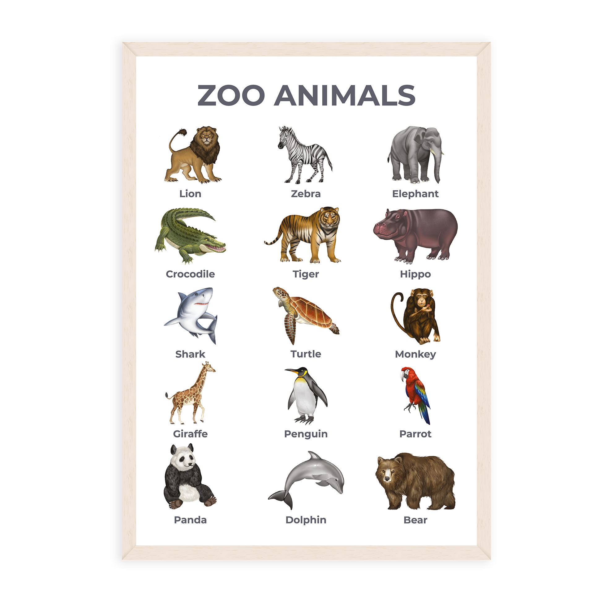 Zoo Animals Poster - Educational Wall Chart (A3)